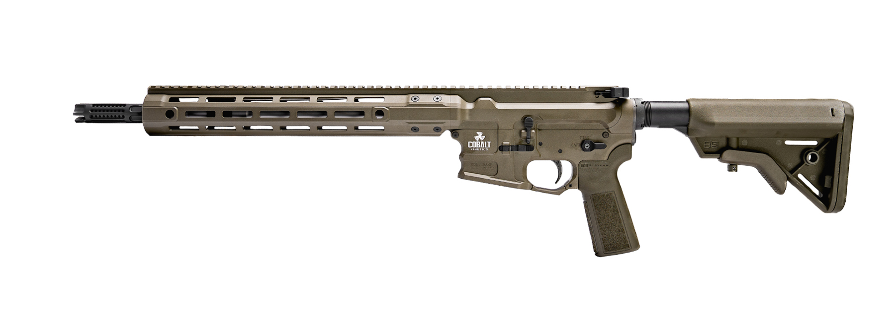 Cobalt’s patented Dual Drop mechanism is expanding the functionality of the classic AR-15 platform. Dual Drop improves weapon handling and reload speed faster. We put the system’s controls within reach of the thumb of the shooting hand. The Dual Drop adds a second forward assist control- mirrored on the left side of the upper receiver and mechanically connected to the right side assist and the bolt catch. Without adjusting your grip, you can press either forward assist and the bolt is released to reload the firearm.